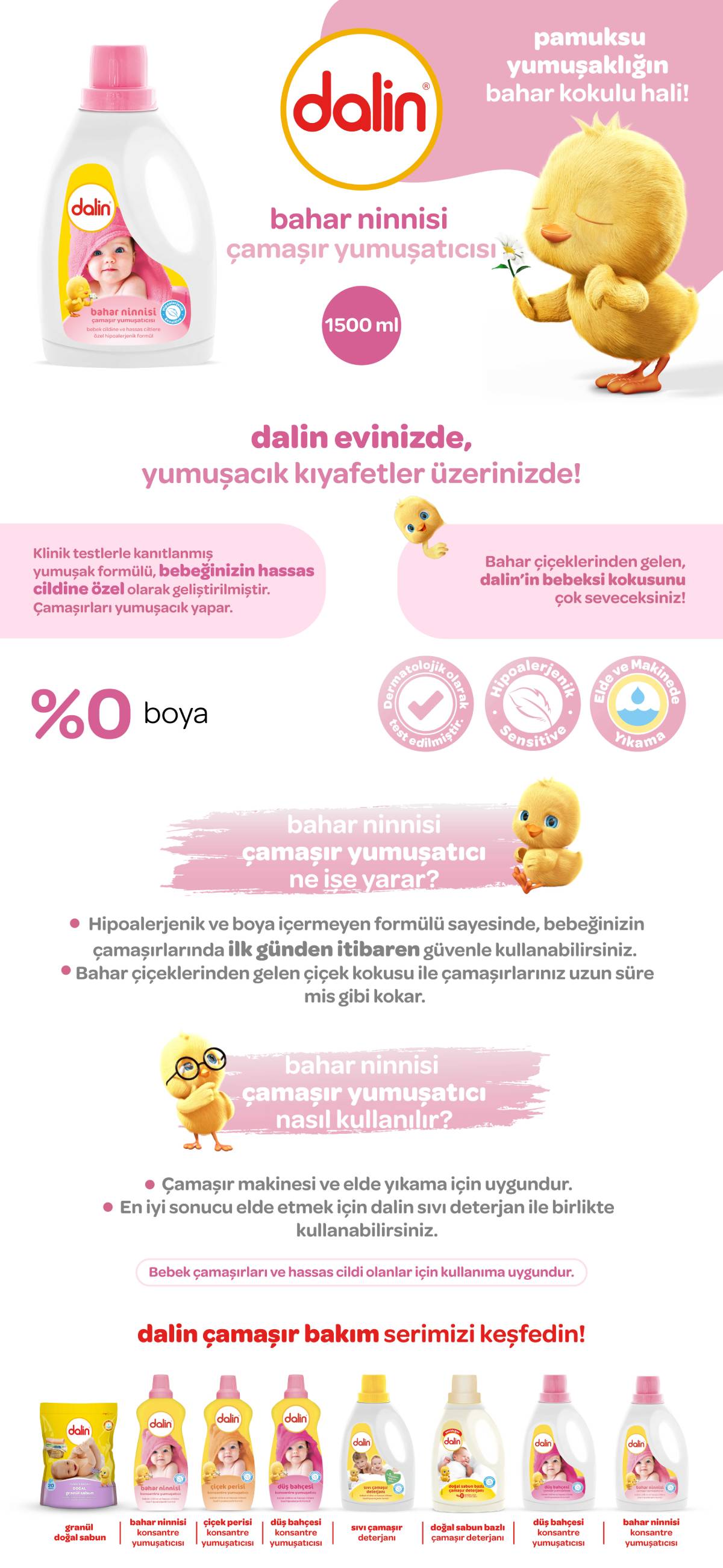 Dalin Bahar Ninnisi'ni ilk günden itibaren güvenle kullanabilir, bahar çiçeklerinden gelen mis Dalin kokusunun keyfini çıkarabilirsiniz.