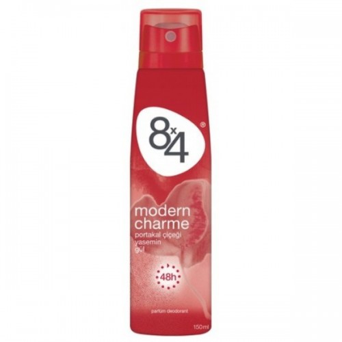 Karizman ve bulaşıcı yaşama sevincin ile etrafındakilerin aklını başından alıyorsun.Feminen inceliğin sayesinde dünya ayaklarının altında. Nerede ve ne zaman olduğu önemli değil,8x4 Modern Charme deodorant spreyin çiçekli ve meyveli kokusu sana 24 saat etkin formülü ile koruma sağlar.