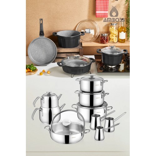 • Amboss Cool 14 Parça Çelik Tencere Seti v 18 / 10 CR-Nİ Paslanmaz Çelik v İndüksiyon dahil her türlü ocak üzerinde kullanılabilir.
