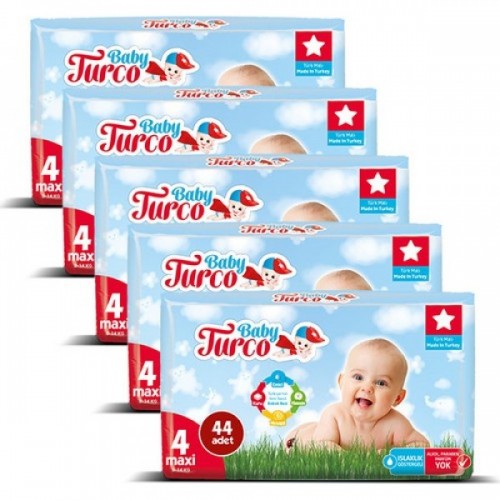 Baby Turco Bebek Bezi 4 Beden Maxi 44 lu x 5 Adet