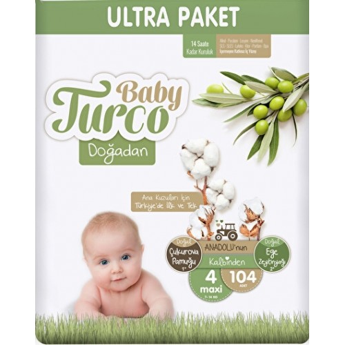 Baby Turco Doğadan Ultra Fırsat Bebek Bezi 4 No Maxi 104 lü