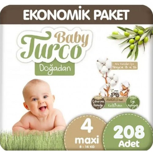 Baby Turco Doğadan Ultra Fırsat Bebek Bezi 4 No Maxi 104 lü x 2 Adet