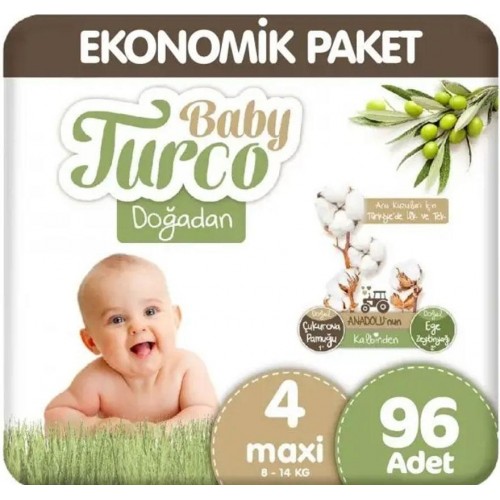 Baby Turco Doğadan Ultra Fırsat Bebek Bezi 4 No Maxi 96 lı