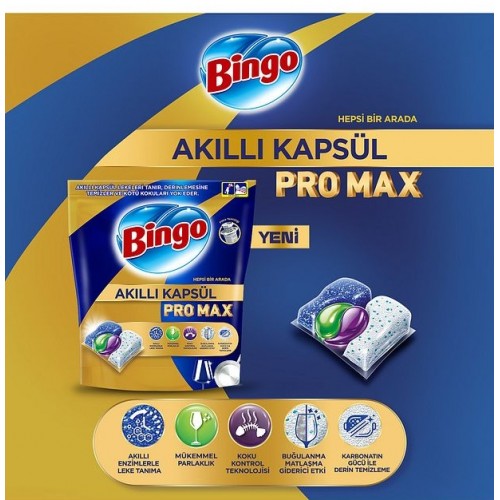 Bingo Akıllı Kapsül Pro Max Hepsi Bir Arada Bulaşık makineleri için özel olarak geliştirilmiş formülü sayesinde kusursuz temizlik ve kalıcı kristal parlaklık sağlar. Mavi toz içinde yer alan akıllı enzimler kısa programda bile zorlu kirleri tanır, söker atar, bulaşıklarınızı tertemiz yapar. Karbonat ile güçlendirilmiş formülü ile kurumuş, yanmış ve yağlı kirleri kolayca çıkarır, derinlemesine temizler. Özel içeriğiyle cam ve çelik bulaşıklarınızda matlaşma ve buğulanmayı giderici etki sağlar. Koku kontrol teknolojisi ile yumurta, balık, sarımsak gibi kötü kokuları yok eder. Bulaşıklarınız ve makineniz göz alıcı parlaklığa kavuşur, tertemiz olur ve ferah kokar. Üstelik filtrenizde de derinlemesine temizlik sağlar.