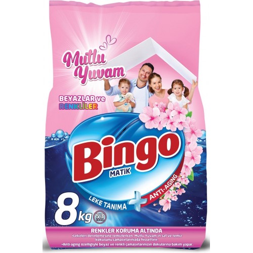• Bingo Matik Mutlu Yuvam Renkli ve Beyazlar Toz Çamaşır Deterjanı 8 kg