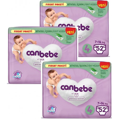 Canbebe Bebek Bezi Fırsat Paketi 4 Beden Maxi (7-14 Kg) 52 li x 3 Adet