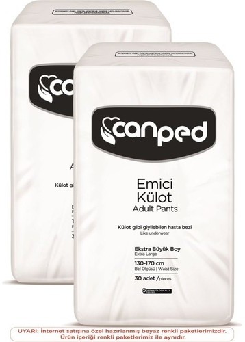 Canped Emici Külot Ekstra Büyük Boy (XL) 60 adetlik kutu içeriğine sahiptir. Islaklığı ve kokuyu hapsetme gücü ile i drar kaçırma problemi olan hastaların kendilerini güvende hissetmelerini sağlar.