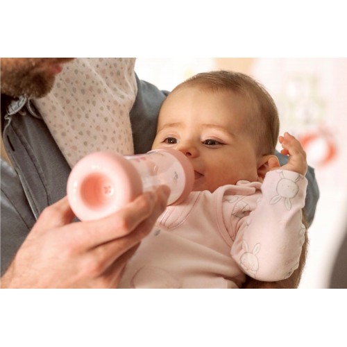 Chicco PERFECT 5 biyofonksiyonel biberon, Soft Sense kaplamalı yumuşak silikon emzik ve mikro hareketlerle bebeğin emme yoğunluğuna uyum sağlayan Equilibrium Membrane valfinin esnekliği sayesinde bebeğe tamamen doğal bir his sağlayarak düzenli ve sürekli beslemeye olanak tanır. .