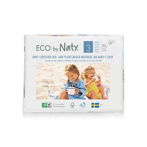 Eco By Naty, sadece bitki bazlı malzemeler kullanılarak üretilen, ekolojik sertifikalı ilk bebek bezi markasıdır.