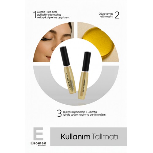 Dolgun ve güçlü kaş-kirpikler için yoğun bakım etkisi! ESOMED Kaş ve Kirpik Serumu biotin, argan yağı ve vitamin B5 ile zenginleştirilmiş formülü sayesinde kaş ve kirpikleri kökten uca besler, dökülmeleri azaltır ve sağlıklı uzamayı destekler. ???? Neden ESOMED Kaş ve Kirpik Serumu? ✔️ İçeriği hekim ve eczacılar tarafından formülize edilmiştir! ✔️ İçerik gücüyle yoğun besleyici bakım ✔️ Biotin ve Argan ile kökten uca güçlenmiş kıl yapısı ✔️ Dökmeyi azaltır, yeni kıl çıkışlarını destekler ✔️ Kozmetik ürünlerin verdiği hasarlara karşı koruma ???? “ İlk haftadan itibaren fark edilir dolgunluk, düzenli kullanımda daha hacimli ve canlı kaş-kirpikler!” ???? İçerik gücüyle rakipsiz, doğal güzelliğin en güçlü destekçisi! ✅ İçerik Gücü (Etken Maddeler): Biotin & Vitamin B5: Kökleri güçlendirir, uzamayı destekler Argan & Tatlı Badem Yağı: Besleyici ve nemlendirici etki Elma & Defne Yağı: Doğal parlaklık sağlar Susam & Kantaron Yağı: Dökülmeyi azaltır, kıl köklerini besler Çam Terebentin & Okaliptüs: Kıl köklerini uyarır ???? Güvenli Formül: Paraben , sentetik aroma ve boya içermez. Tüm cilt tiplerine uygundur. ✅ Kullanım Talimatı: 1️⃣ Günde 1 kez, özel aplikatörle temiz kaş ve kirpik diplerine uygulayın. 2️⃣ Göze temas ettirmeyin. 3️⃣ Düzenli kullanımda 3-4 hafta içinde yoğun hacim ve canlılık sağlar.