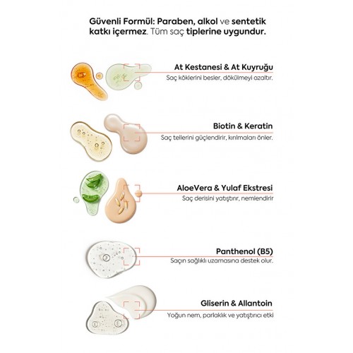 Esomed Saç Dökülme Karşıtı, Bitkisel Ve Besleyici Saç Bakım Spreyi 60 Ml GÜNDE 2 DEFA TEMİZ SAÇA VE SAÇ Sİ OLAN BÖLGEYE SIKINIZ. 3-4 DAKİKA BOYUNCA PARMAK UÇLARINIZ İLE YAPARAK SAÇ KÖKLERİNE UYGULAYINIZ. ETKİLİ BİR SONUÇ İÇİN 12 HAFTA BOYUNCA DÜZENLİ KULLANILMASI TAVSİYE EDİLİR. UYARILAR: HARİCEN KULLANILIR. ODA SICAKLIĞINDA MUHAFAZA EDİNİZ. At Kestanesi & At Kuyruğu: Saç köklerini besler, dökülmeyi azaltır Biotin & Keratin: Saç tellerini güçlendirir, kırılmaları önler Aloe Vera & Yulaf Ekstresi: Saç derisini yatıştırır, nemlendirir Panthenol (B5): Saçın sağlıklı uzamasına destek olur Gliserin & Allantoin: Yoğun nem, parlaklık ve yatıştırıcı etki Güvenli Formül: Paraben, alkol ve sentetik katkı içermez. Tüm saç tiplerine uygundur.