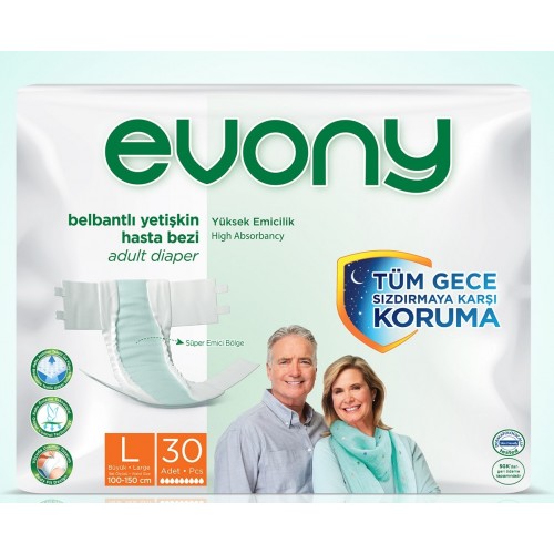 Evony Belbantlı Yetişkin Hasta Bezi Medium 30 lu x 4 Adet
