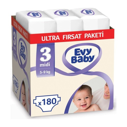 Anne & Bebek kategorisinde bulunan Evy Baby Bebek Bezi 3 Beden Midi Ultra Fırsat Paketi 180 Adet ürününü en ucuz fiyat fırsatı ile siz değerli müşterilerimiz için Happy'de satışa sunmaktayız.