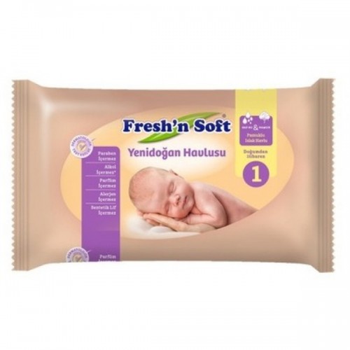 Fresh'n Soft Yenidoğan Havlusu saf su ve pamuk içeriğiyle doğumdan itibaren bebeğinizin temizliğini güvenle sağlamaktadır.