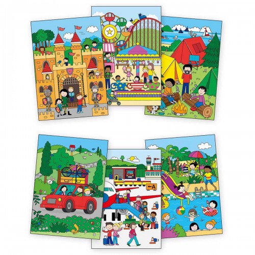 Tatil temalı resimlerdeki renkleri ortaya çıkarmak için kitabın üstünde yer alan "sihirli" kalemi kullan. Kalemin içini suyla doldur ve ardından sayfaların üzerinden geç! Gizli renklerin suyla ortaya çıktığını göreceksin. Sayfalar kuruduğunda renkler ortadan kaybolacak ve tekrar tekrar renklendirme şansın olacak.