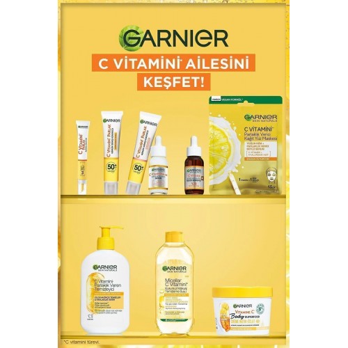 GARNIER C VİTAMİNİ* PARLAK GÜNLÜK GÜNEŞ KORUYUCU FLUID YÜZ KREMİ İLE BİR GÜN DEĞİL, HER GÜN SPF! C VİTAMİNİ* içeren formülü ile cildin parlaklık görünümünü arttıran hafif dokulu bu günlük UV fluid, Güneşten korur Koyu leke görünümünü azaltır Beyaz iz bırakmazÇOK YÜKSEK KORUMA SPF50+ faktörü ile güneş ışınlarına karşı yüksek koruma sağlar.KLİNİK ETKİSİ TÜM CİLT TONLARINDA KANITLANDI** Anında cildi UVB, UVA ve uzun UVA ışınlarından korur. Koyu leke görünümünü -%53 azaltır Cilt +%43 daha parlak görünür. +%40 daha pürüzsüz bir cilt.GÖRÜNMEZ DOKU İLE GÜN BOYU SÜREN NEMLENDİRİCİ ETKİYİ KEŞFET! Dermatolojik ve oftalmolojik olarak test edildi. Hassas ciltlere uygundur. Vegan formül*C Vitamini türevi **Klinik çalışma, 76 kadın, 12 hafta, koyu leke: yoğunluk ve görünürlük. Ortalama durum, sonuçlar değişiklik gösterebilir.