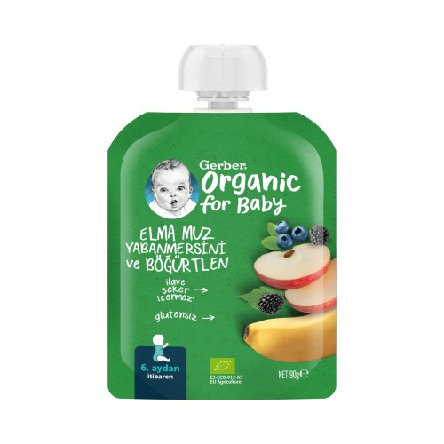 Gerber Organik Armut Elma ve Muz Püresi ile bebeğinizi keyifle besleyebilir ve ara öğünlerinde kullanabilirsiniz.