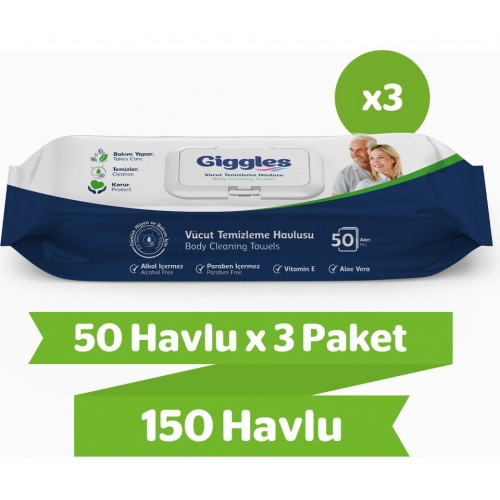 Giggles Vücut Temizleme Havlusu 50 li x 3 Adet