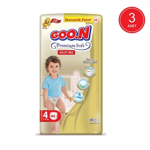 Ürün Kodu: PKT.GOON.010Kargo : 69.99'Goon Premium Soft Külot Bez Ekonomik Paket 4 Beden 44 Adet x 3 Adet