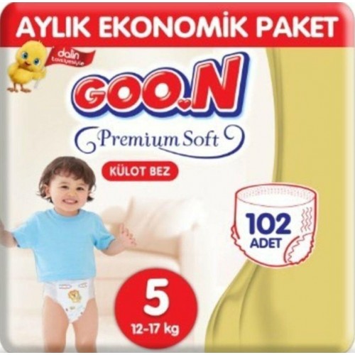 Ürün Kodu: PKT.GOON.011Kargo : 69.99'Goon Premium Soft Külot Bez Ekonomik Paket 5 Beden 34 Adet x 3 Adet