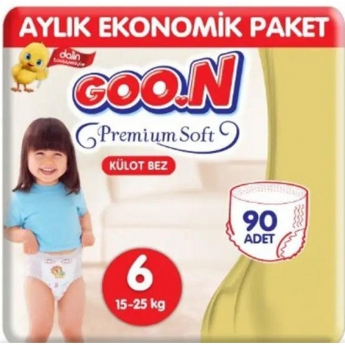 Ürün Kodu: PKT.GOON.012Kargo : 69.99'Goon Premium Soft Külot Bez Ekonomik Paket 6 Beden 30 Adet x 3 Adet