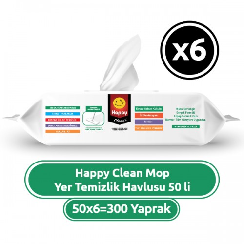 Happy Beyaz Sabun Kokulu Mop Yer Temizlik Havlusu 50 li x 6 Adet