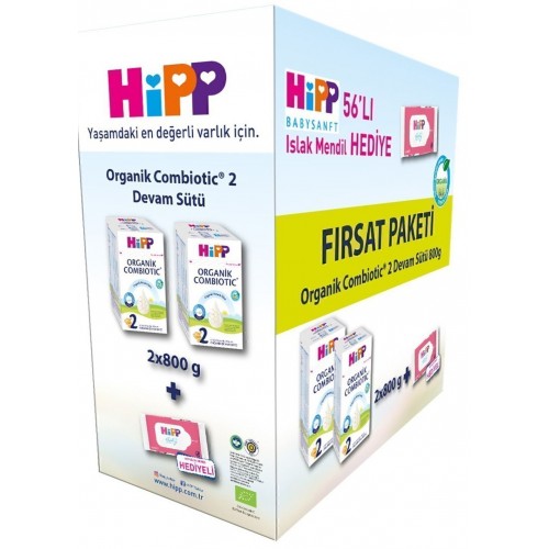 Hipp 2 Organik Devam Sütü Combiotic 800gr x2 Adet(Islak Mendil Hediye)