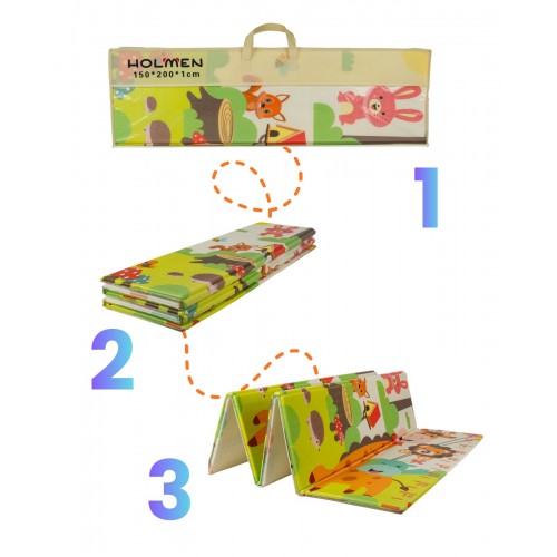 HOLMEN Katlanabilir Çift Taraflı Oyun Matı-Oyun Halısı 150x200 Cm (TAŞIMA ÇANTALI)