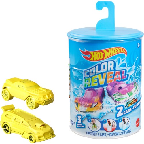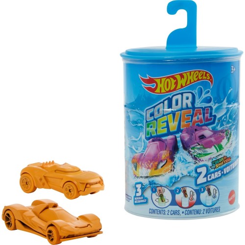 •Hazne ile birlikte gelen 1:64 ölçekli iki adet Hot Wheels Color Reveal aracın dahil olduğu Hot Wheels Color Reveal - Renk Değiştiren Araçlar paketi içerisinde keşfedilmeyi bekleyen iki sürpriz bulunuyor.