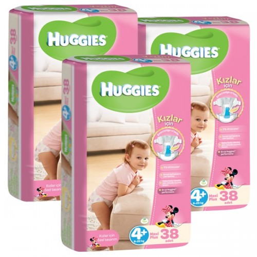 Huggies Bebek Bezi Kız Maxi Plus 4+ Beden 38 li x 3 Adet