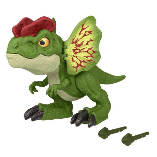 Bu 8 inç uzunluğundaki figür, renkli ve ayırt edici Dilophosaurus fırfırına ve baş armasına sahiptir.