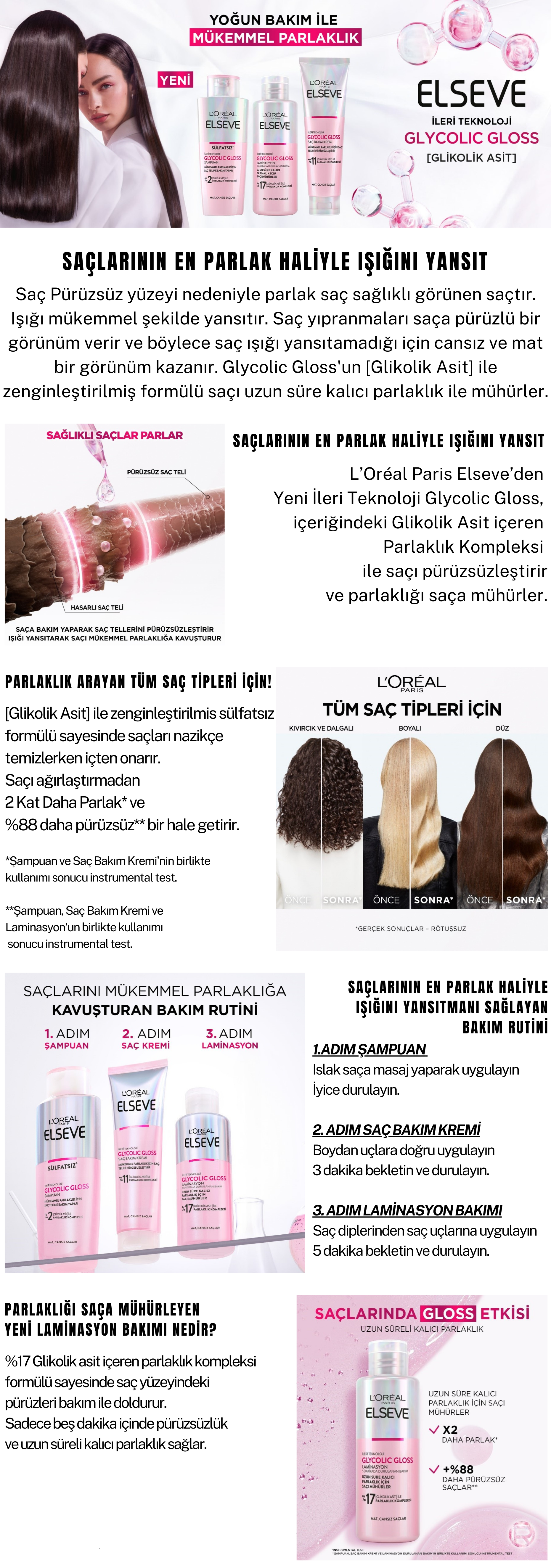 Loreal Paris Elseve Glycolic Gloss Mükemmel Parlaklık İçin Pürüzsüzleştirici Saç Kremi 150 ml