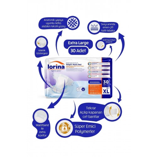Lorina Belbantlı Hasta Bezi Extra Büyük Boy 30 lu
