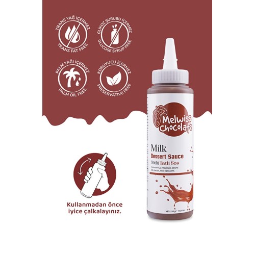 Melwiss Chocolate Sütlü Tatlı Sos 330 gr Waffle-Krep-Pankek Sosu
