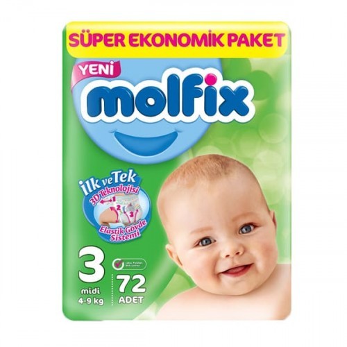 Molfix Bebek Bezi 3 Beden Midi Dev Ekonomik Paket 72 adet