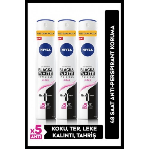 Nivea Black&White Invisible Sprey Deodorant 200 ml x 3 Adet