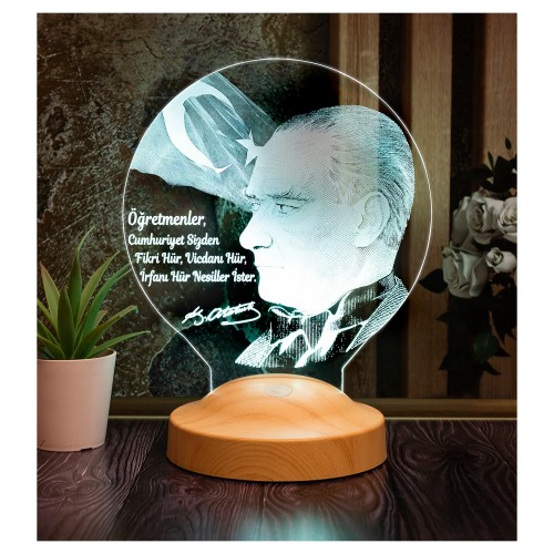 Öğretmenler Günü Hediyesi Atatürk Sözleri Hediye Led Lamba, Mustafa Kemal Atatürk Görselli