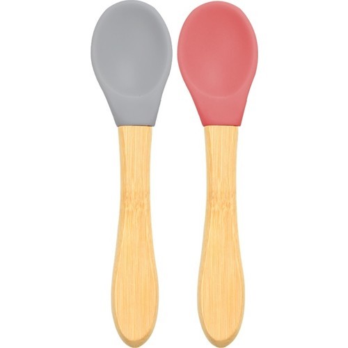 Oioi Bambu Saplı Silikon Kaşık 2 li Gri - Bordo