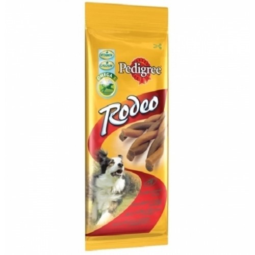 Pedigree® Rodeo köpeğiniz için lezzetli ve eşsiz bir ödüldür. Çiğnenebilen dokusu, eşsiz şekli ve dayanılmaz et tadı ile köpeğinize bitmeyen bir zevk verecektir.