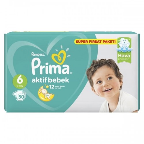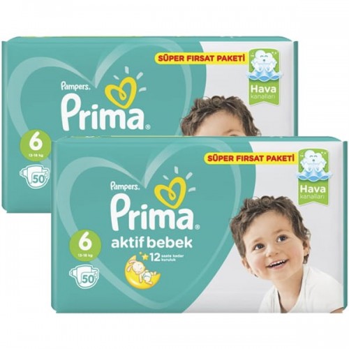 Prima Bebek Bezi Aktif Bebek 6 Beden 50 Adet Extra Large Süper Fırsat Paketi x 2 Adet