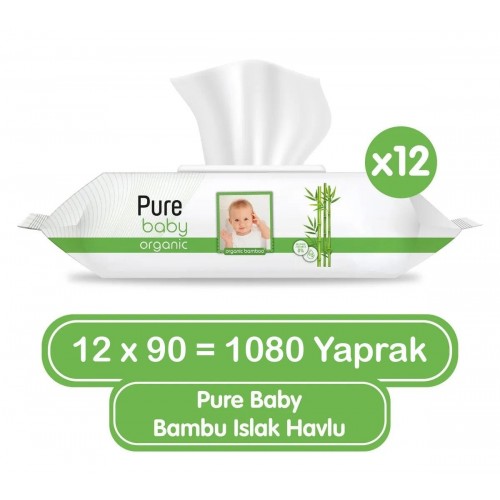 Pure Baby Organik Bambu Özlü Islak Havlu 90 lı x 12 Adet