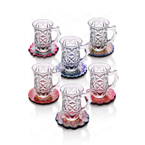 • 6 Kristal Kesme Cam kulplu çay kupası.