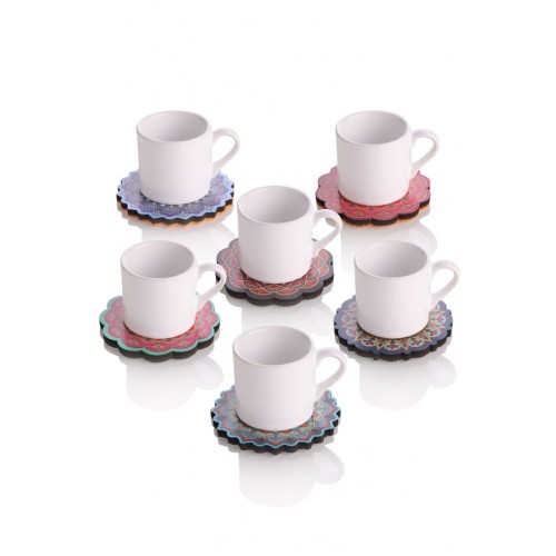 Queens KitchenQueen's Kitchen 6 Kişilik Çini Tabaklı Türk Kahvesi Takımı