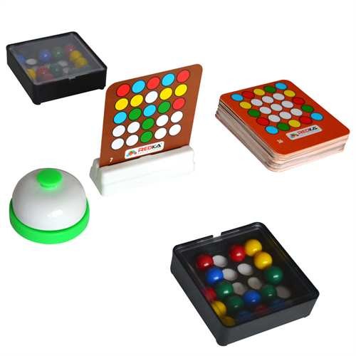 REDKA BECERI·KLI· PARMAKLAR Akıl Zeka ve Strateji Oyunu Eğlenceli bir oyuna ne dersiniz? Kartları açın, parmaklarınızı çalıştırın ve renkli misketler ile şekilleri oluşturmaya başlayın! NASIL OYNANIR? Oyunun amacı; görev kartlarındaki şekli, platformdaki renkli misketleri kullanarak en hızlı şekilde oluşturmaktır. Şekli ilk oluşturan oyuncu zile basar, dizilimi doğru ise kartı kazanır. Oyun sonunda en fazla kartı olan oyuncu oyunu kazanır. Becerikli Parmaklar oyunu çocukların: *El göz koordinasyonunu, *Odaklanma, dikkatini toplama, *Şekilleri çeşitli özelliklerine göre gruplama *İnce motor becerisini geliştirir. Kutu İçeriği REDKA Becerikli Parmaklar kutusunda 60 adet görev kartı, 1 adet kart tutacağı, 2 adet oyun platformu ve 1 adet zil bulunur. Yas¸ +4 Oyuncu sayısı : 2 *Ürünlerimiz CE Oyuncak Güvenliği Standartlarına Göre Test Edilmiştir.