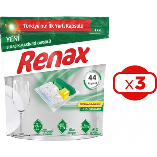 Renax Bulaşık Makinesi Kapsülü Hepsi Bir Arada 44 lü x 3 Adet