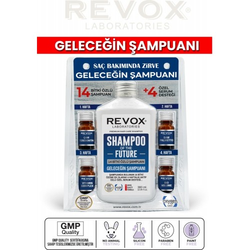 Revox Bitkisel Şampuan ve Aktif Özlü 4 Adet Özel Destek Serumu Saç Bakım Seti Geleceğin Şampuanı