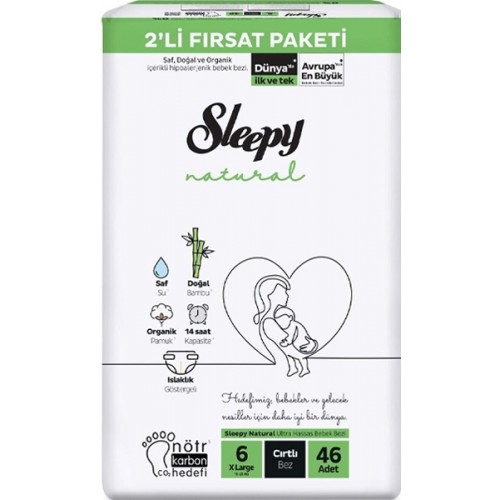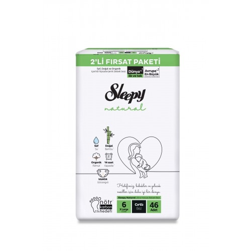 Sleepy Natural 2'li Fırsat Paketi 6 Numara XLarge Bebek Bezi 46 Adet