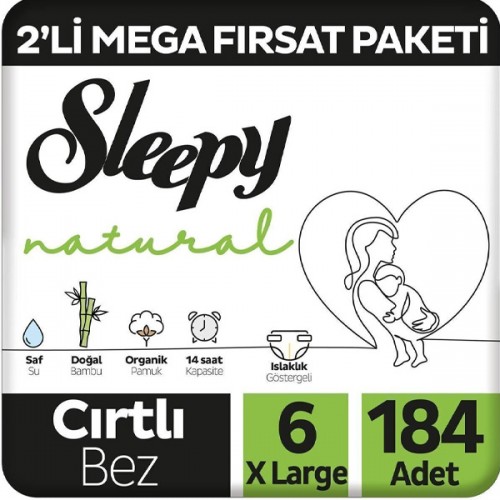 Sleepy Natural Fırsat Paketi Bebek Bezi 6 Numara Xlarge 184 Adet