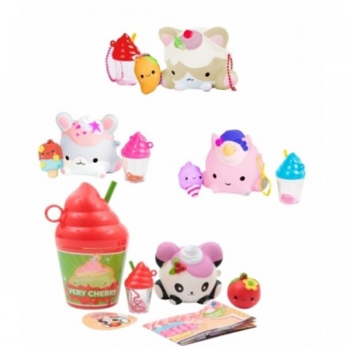 Rengarenk smoothie bardaklarının her biri içerisinde 1 minik şişe, 1 sürpriz mini figür, 1 çıkartma, 1 top zincir ve 1 Smooshy Mushy hayvancık figürü bulunmaktadır.