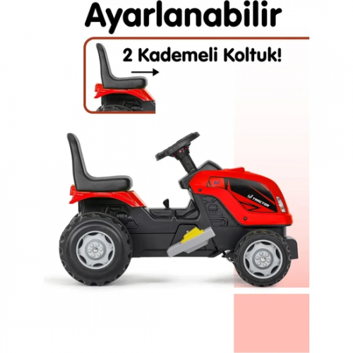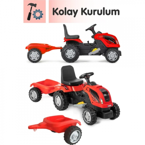 UJ Toys 6 V akülü Traktör Römorklu - Kırmızı